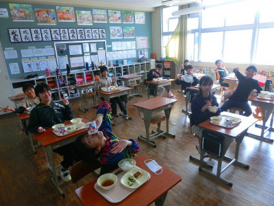 今日の給食は鯛のネギ味噌焼きとけんちん汁で、子供たちもおいしそうに食べていました。