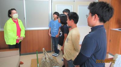 赤十字奉仕団より清掃用具贈呈 2023年6月12日 17時45分 赤十字奉仕団の方から、竹ぼうきと熊手をいただけることになりました。児童を代表してJRC委員会の児童が受け取りました。ありがとうございました。大切に使わせていただきます。