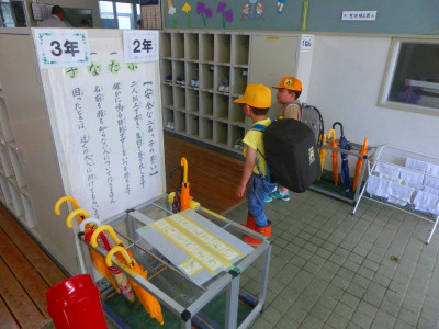 1~4年生の下校時には、1・2年生が何やら大きな袋を持っていました。